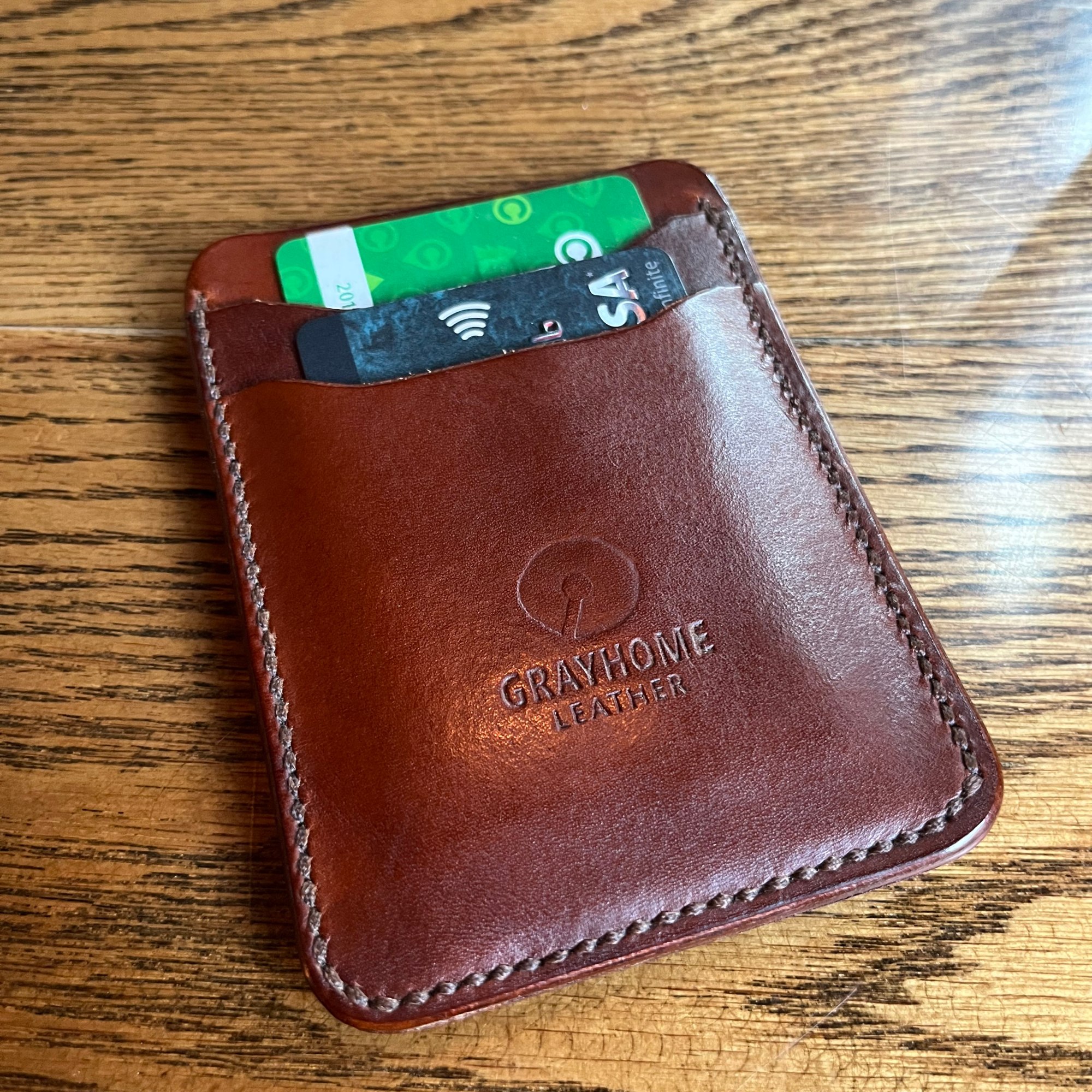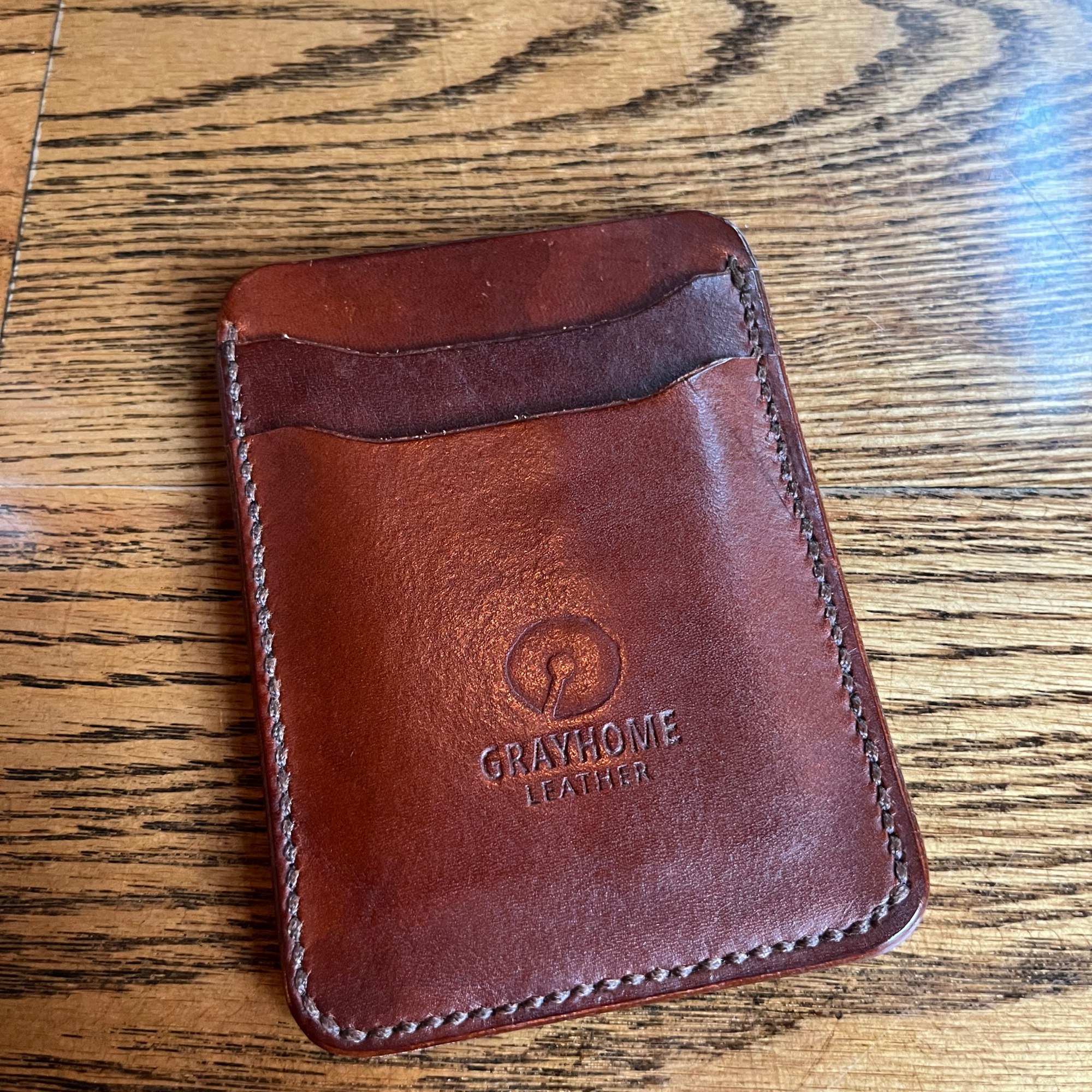 A friend had asked for a minimal card holder wallet. This design has two card pockets front and back as well as a larger pocket in the middle for emergency cash or another card or two if needed.